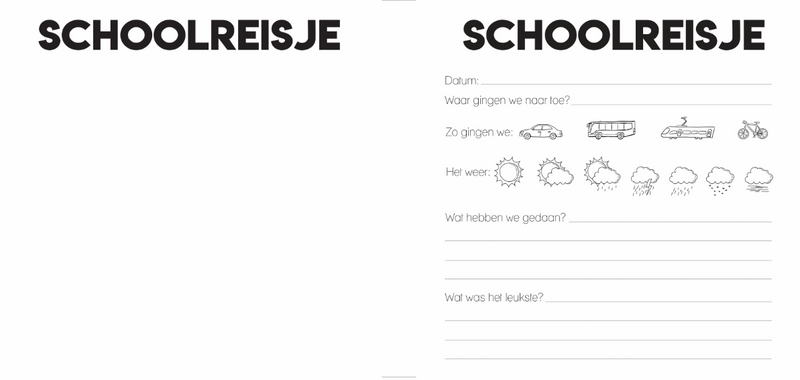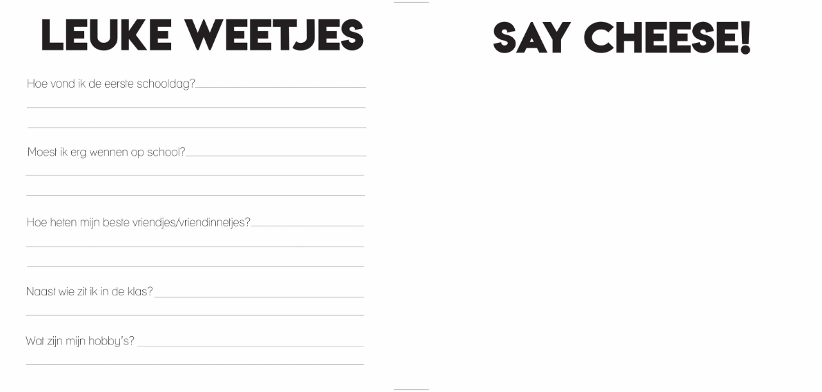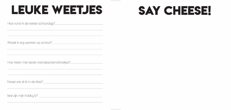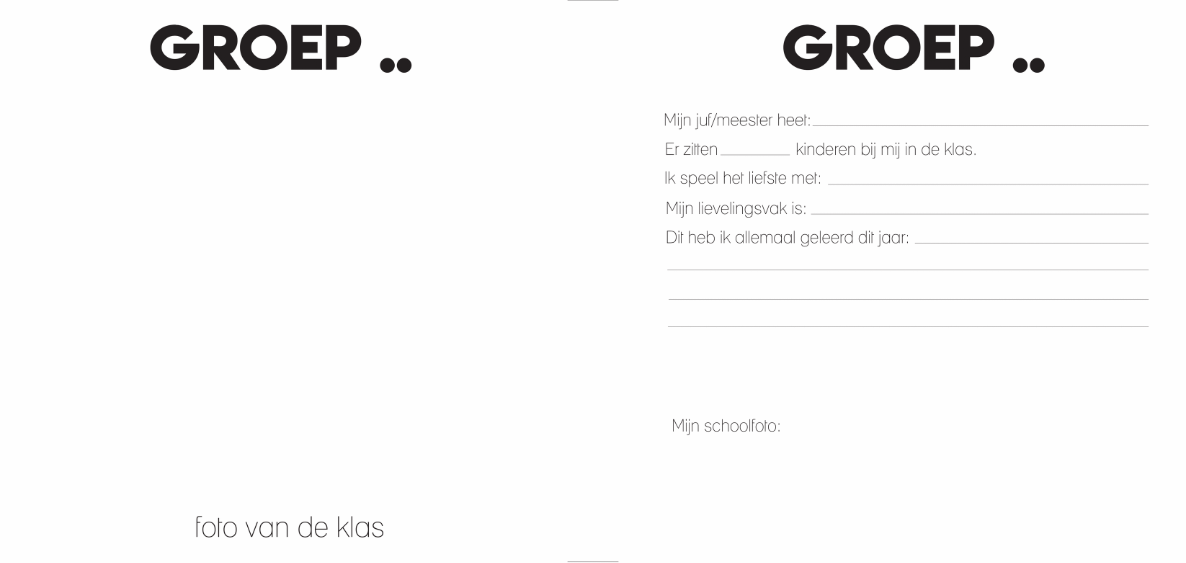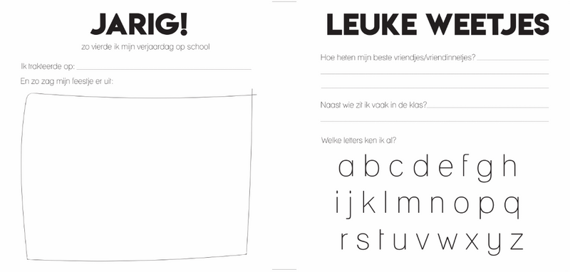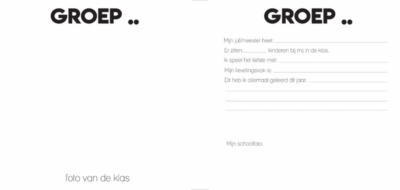 • Indeling: Vaste pagina’s per schooljaar (ruimte voor schoolfoto’s, pasfoto’s, klassenfoto’s, kinderfeestjes, schoolreisjes, weetjes en knutselwerkjes)