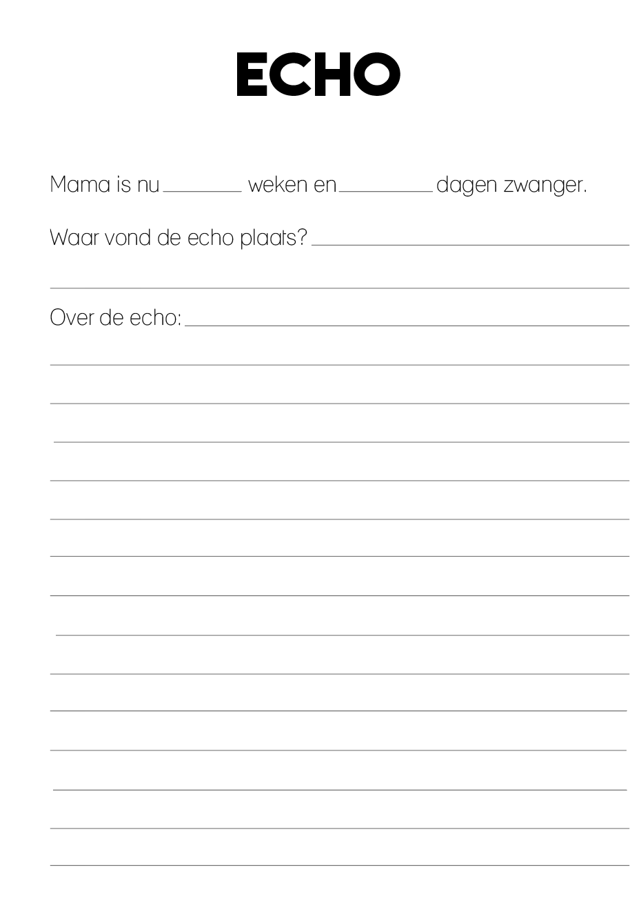• Indeling: heldere, rustige invulpagina’s afgestemd op echo momenten en zwangerschap