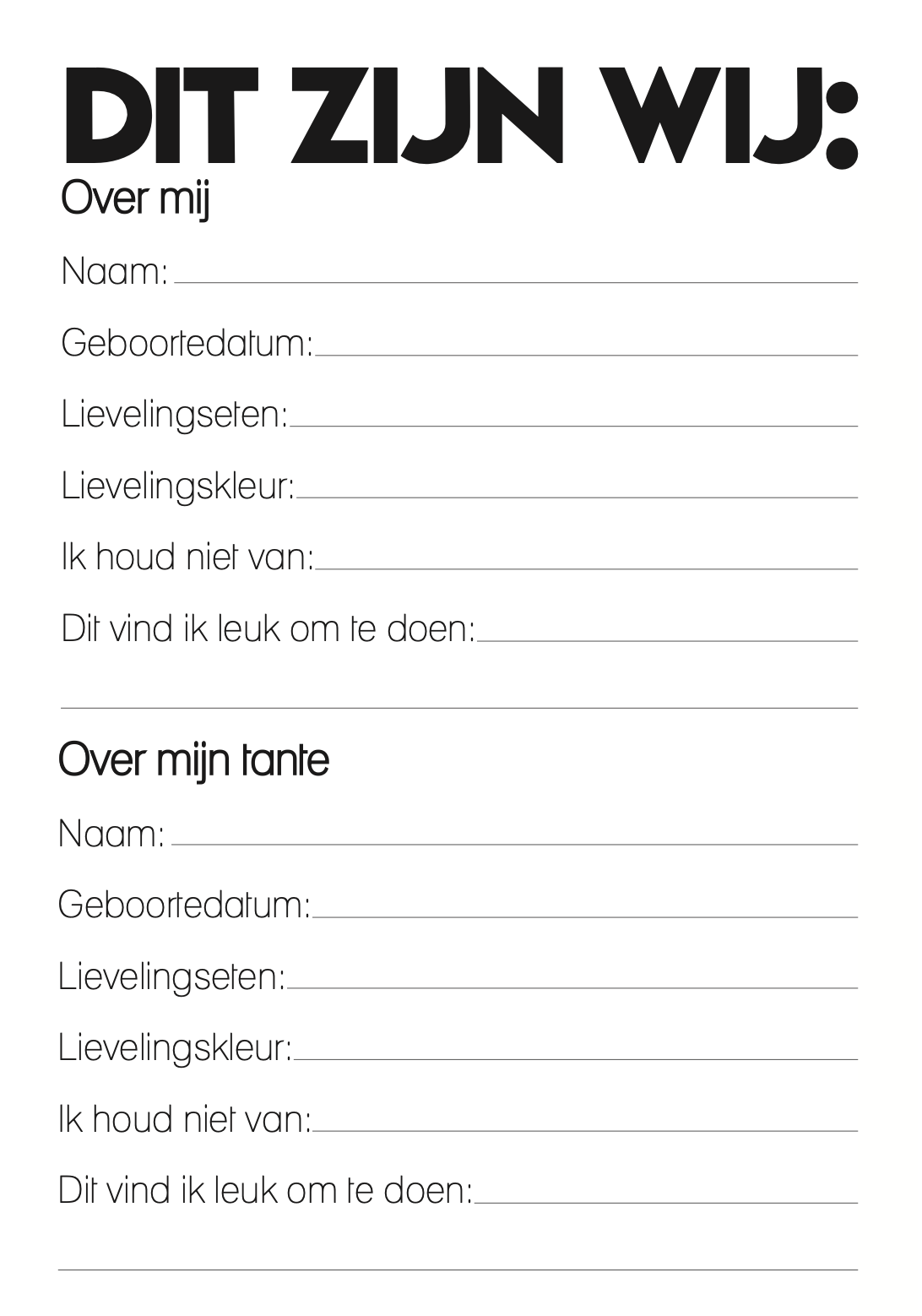 - Invulpagina’s voor dagjes samen, kleine uitjes en bijzondere momenten met tante