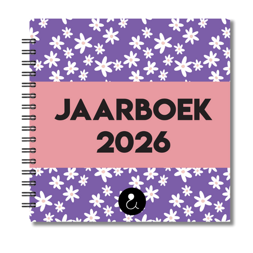 Jaarboek 2026 | Invulboek 2026 | Fotoboek Jaarboek | Bloemetjes Paars Wit