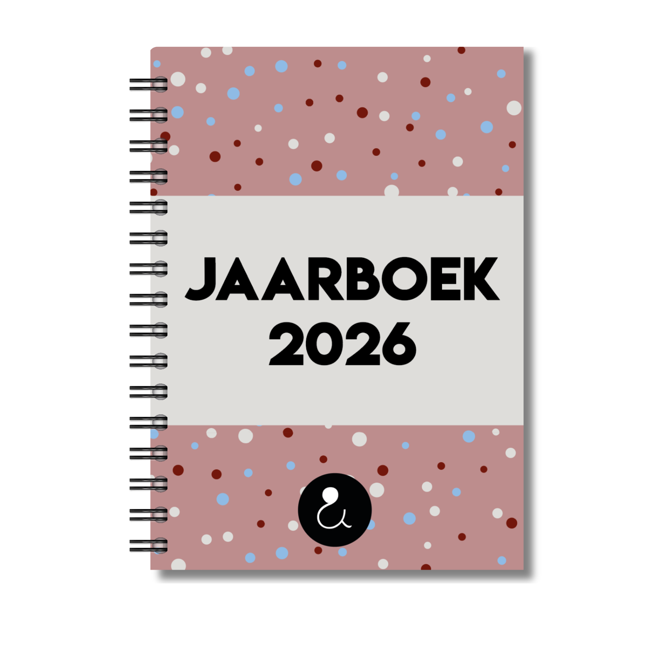 Jaarboek 2026 A5 | Blanco Jaarboek A5 2026 | Fotoboekje Jaarboek | 14,8x21cm | Roze Stipjes