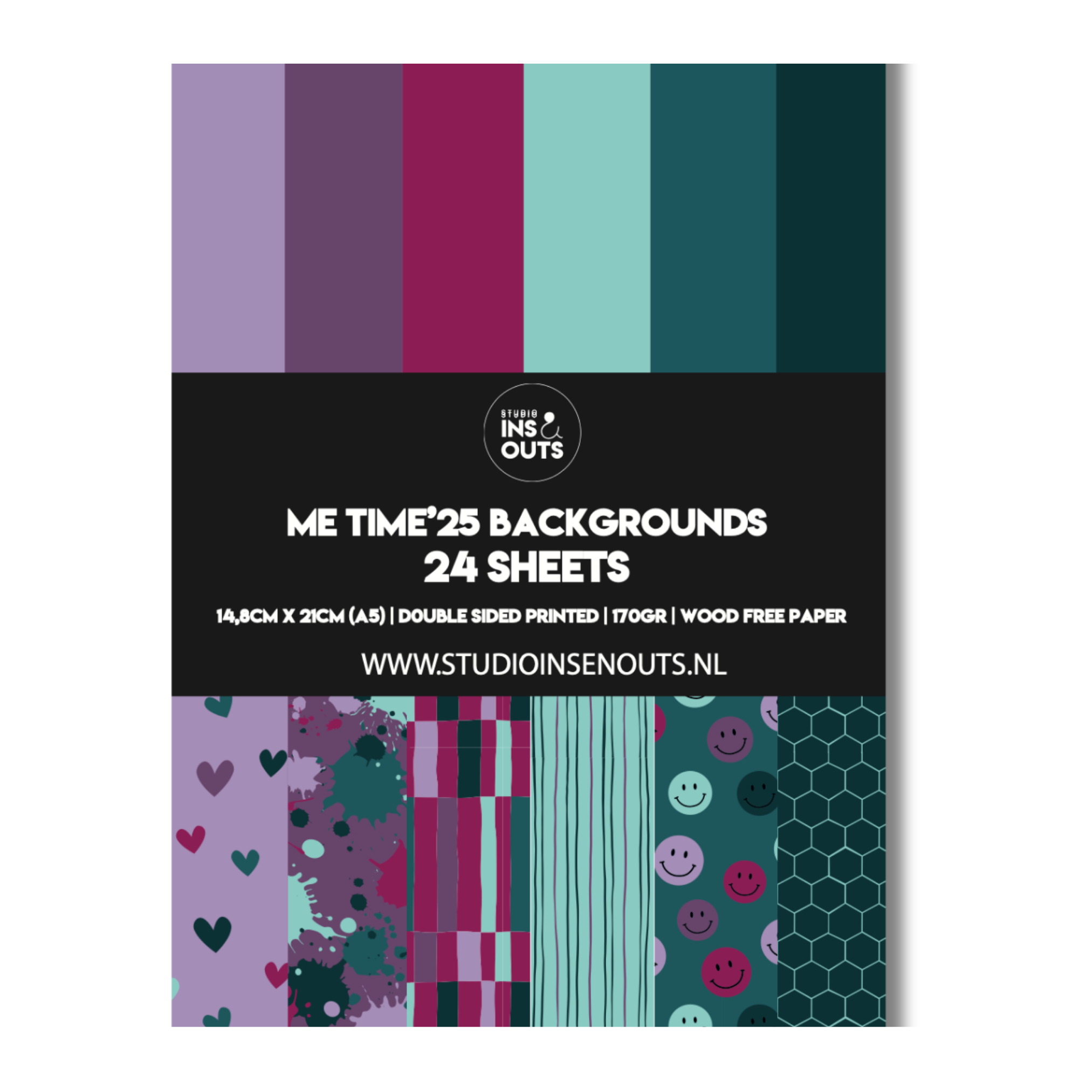 De collectie Me-Time’25 van Studio Ins & Outs is speciaal ontwikkeld voor iedereen die creativiteit wil combineren met ontspanning en selfcare. Met de harmonieuze mix van paars, lila, bordeaux, donkergroen, mintgroen en petrolgroen leg je herinneringen vast in een rustige en sfeervolle stijl. De prints en teksten zijn ontworpen om het thema me-time te benadrukken: tijd voor jezelf, relaxmomenten en kleine gelukjes. Deze complete set is daardoor ideaal als scrapbook pakket, journaling set of creatieve knutselset voor wie creativiteit wil gebruiken als manier om te ontspannen.