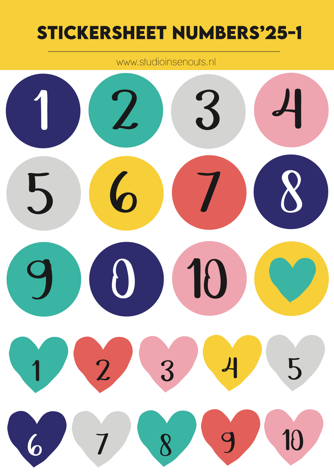 - 2 stickervellen (1 met cijfers in kleur, 1 met zwarte cijfers)