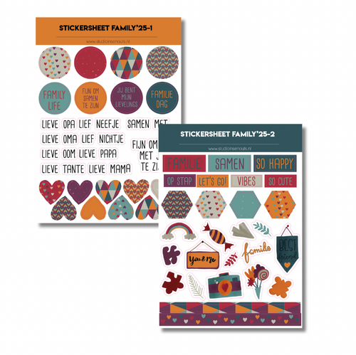 opa, oma, tante, neefjes en nichtjes. En zelfs broertjes en zusjes! Deze mini collectie is een musthave voor de foto's met de familie. Met Nederlandse en Engelse teksten. De kleuren passen bij de Winter'25 collectie.