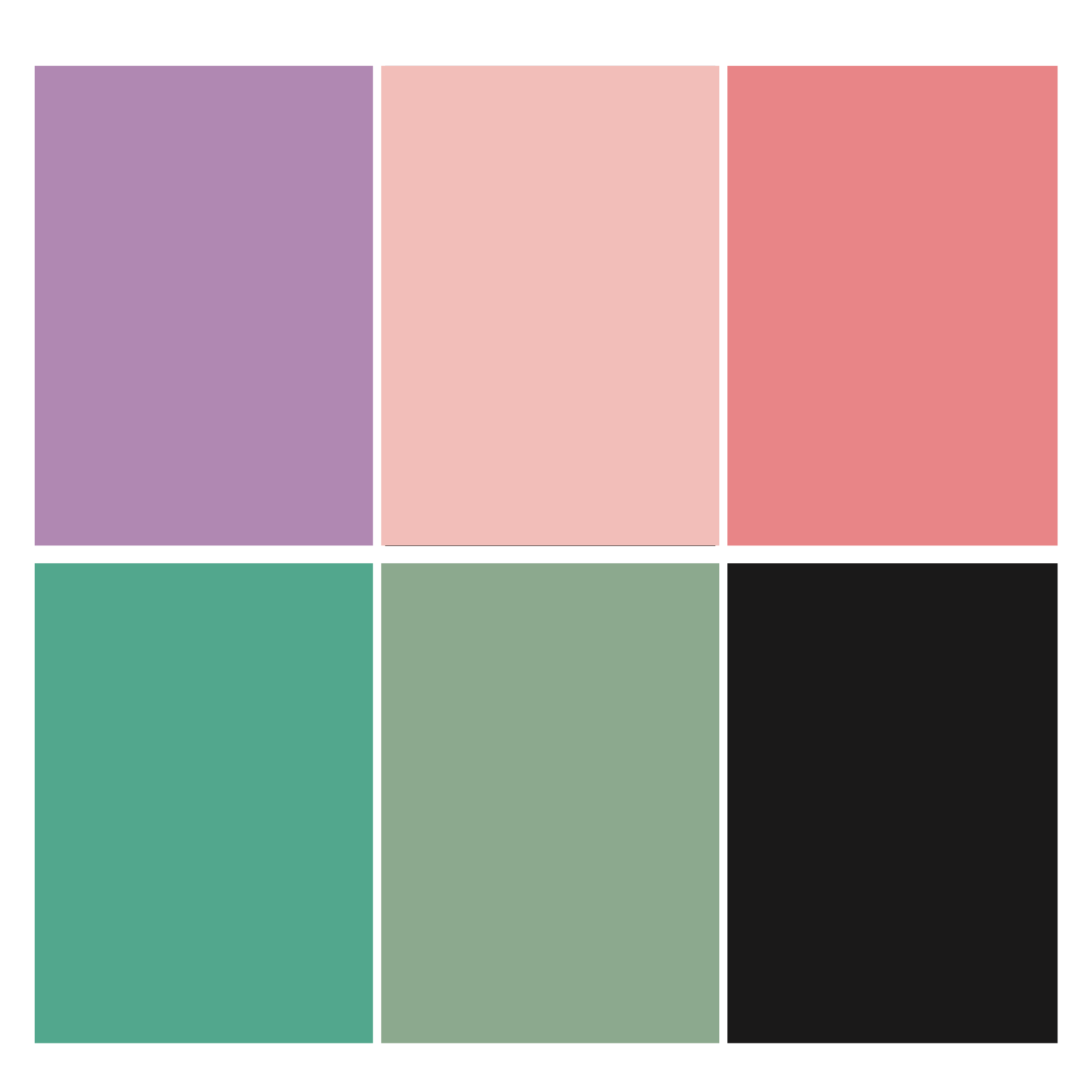 - Kleuren: paars, roze, zalmrood, mintgroen, grijsgroen en zwart