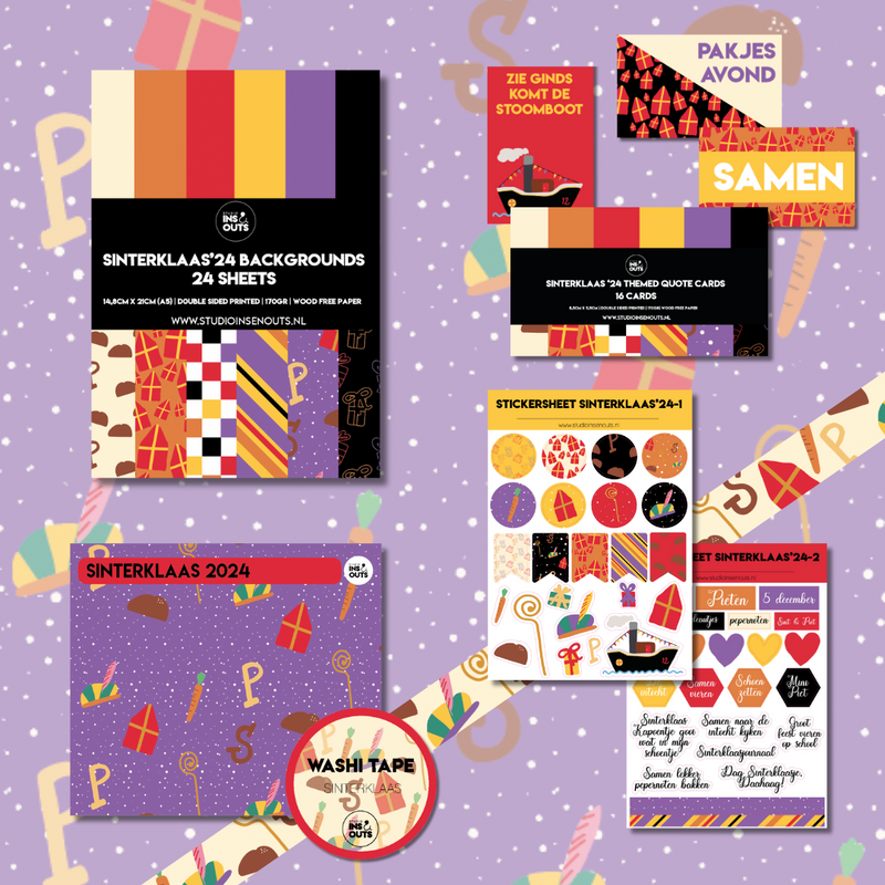 Dit is de preview van de Sinterklaas'24 collectie. Weer een hele andere Sinterklaas collectie dan die van vorig jaar. En wat past deze toch fijn bij alles wat er dit jaar is gemaakt! Het paars knalt werkelijk van het papier en is een fijne combinatie met het rood en geel wat hoort bij Sinterklaas.