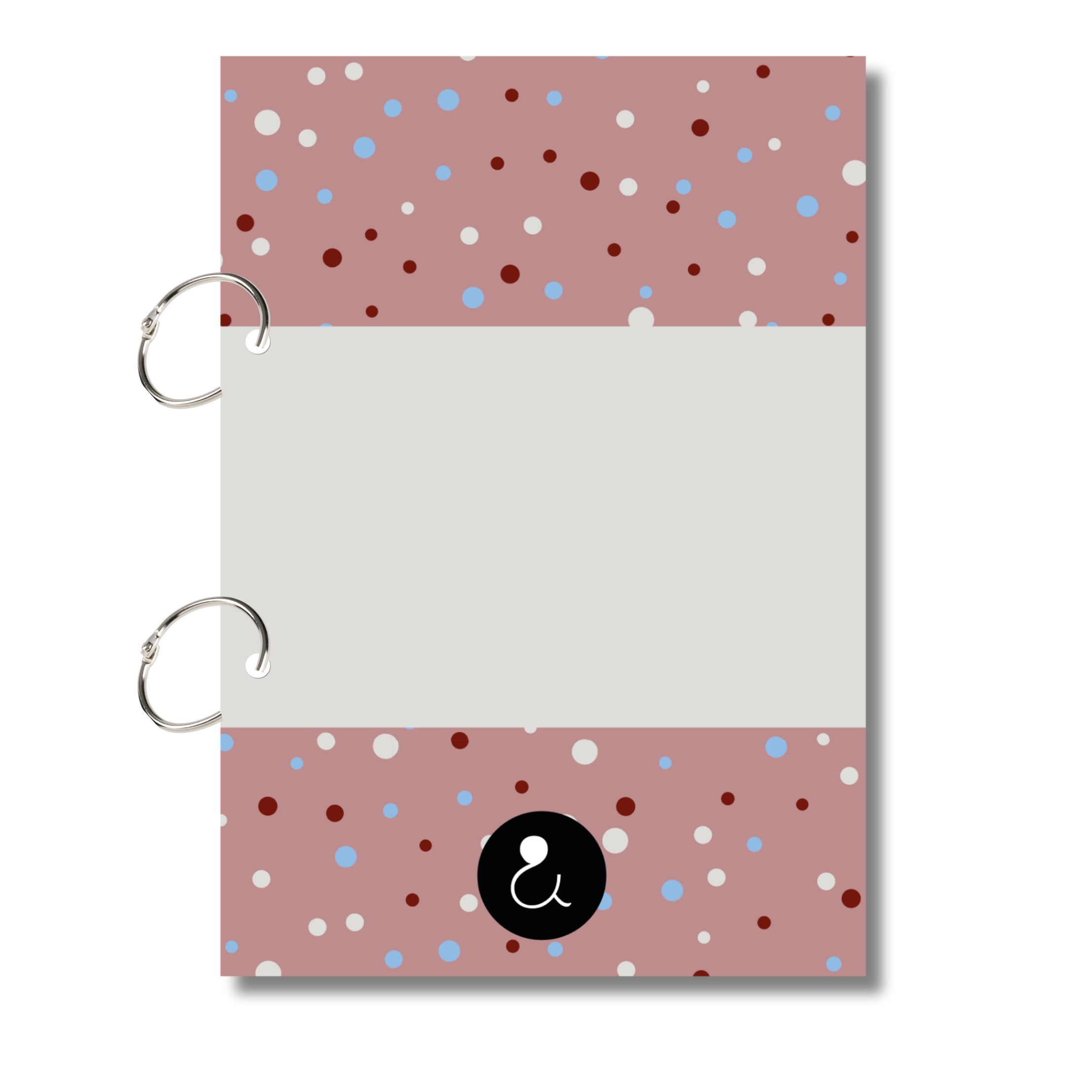 • Custom made bewaarbundel met zelf te kiezen patroon, bandkleur, tekst en ringkleur