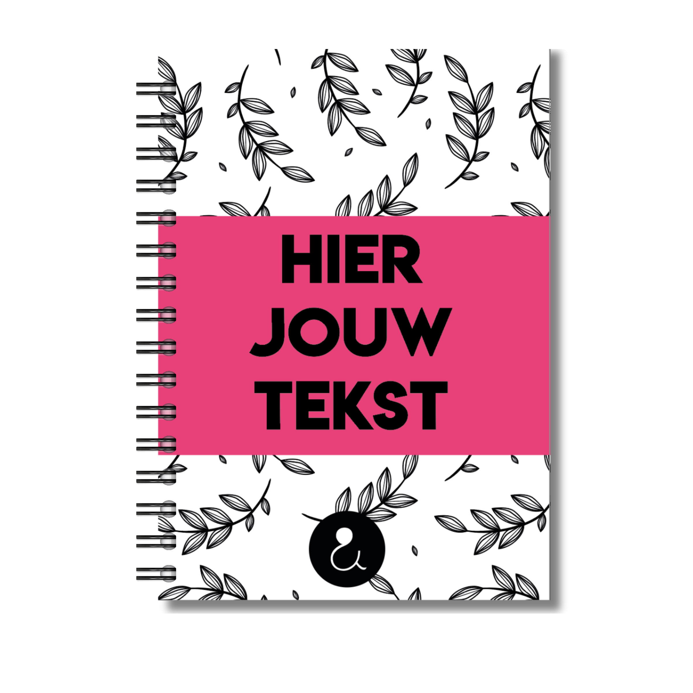 Dit gepersonaliseerde bullet journal is een op maat bullet journal dat je volledig zelf samenstelt. De kaft heeft een botanical blaadjes print en een roze band. Kies een eigen tekst of naam voor op de band en maak zo een persoonlijk bujo dat past bij jouw stijl en gebruik. Het compacte bullet journal notebook heeft een stevige ringband en blanco pagina’s van dik papier, ideaal voor journaling, notities, tekenen en creatieve layouts. Gebruik dit creatieve notitieboek A5 voor dagelijkse planning, het vastleggen van herinneringen of inspiratie. Een praktisch bullet journal met eigen cover, perfect als persoonlijk cadeau of voor je eigen creatieve momenten.