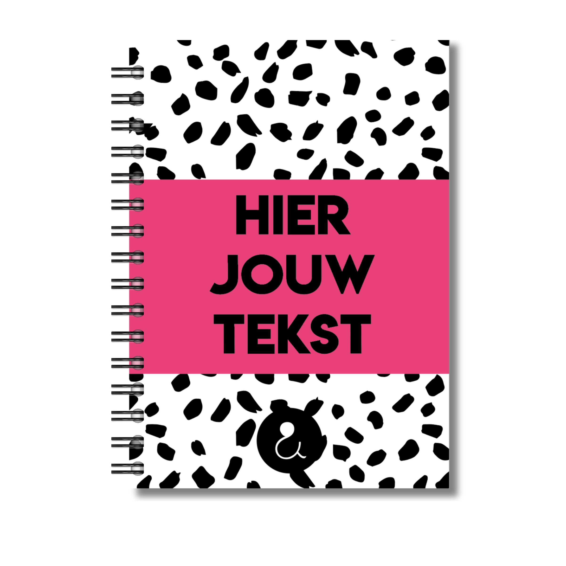 Dit gepersonaliseerde bullet journal is een op maat bullet journal dat je volledig zelf samenstelt. De kaft heeft een dots stippen print en een roze band. Kies een eigen tekst of naam voor op de band en maak zo een persoonlijk bujo dat past bij jouw stijl en gebruik. Het compacte bullet journal notebook heeft een stevige ringband en blanco pagina’s van dik papier, ideaal voor journaling, notities, tekenen en creatieve layouts. Gebruik dit creatieve notitieboek A5 voor dagelijkse planning, het vastleggen van herinneringen of inspiratie. Een praktisch bullet journal met eigen cover, perfect als persoonlijk cadeau of voor je eigen creatieve momenten.