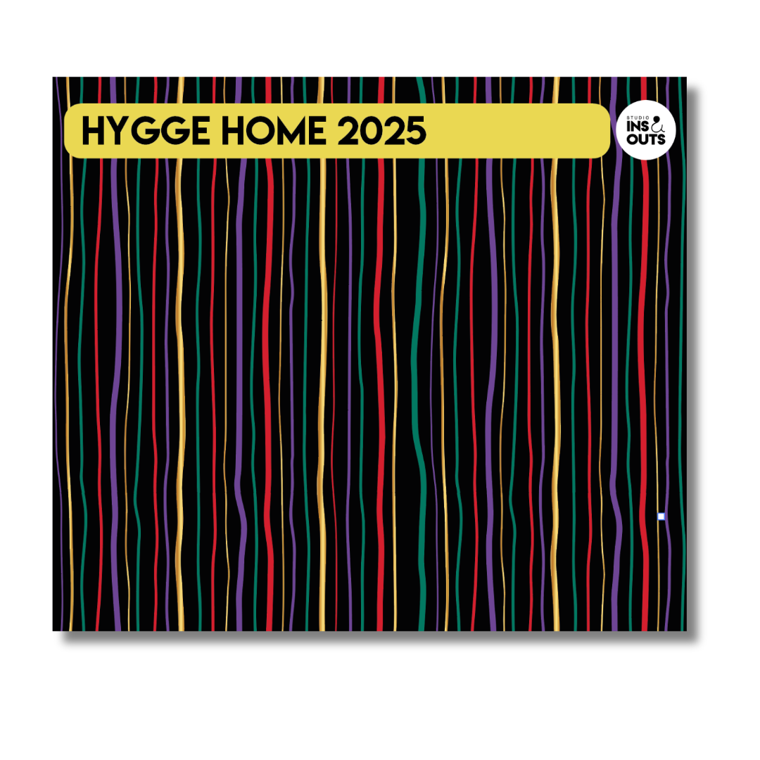 Paperpad Hygge Home’25: Het A5-paperpad bevat 24 dubbelzijdige vellen op stevig 170 grams papier met dessins zoals hartjes, veren, cadeautjes, strepen en knit-prints. De kleuren – donkergroen, paars, rood, geel, goud en zwart – zorgen voor een warme en luxe uitstraling.