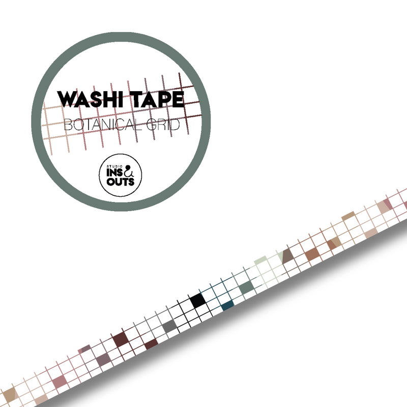 • 1,5cm brede grid tape met fijne lijnen in botanische tinten