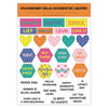 De set van 24 quote cards bevat korte motiverende teksten in een combinatie van Nederlands en Engels, zoals "Let the adventure begin" en "Trots op jou". De kaarten zijn uitgevoerd in het Hello Goodbye kleurenschema en bedrukt met grafische prints, zoals strepen, ruitjes en harten. Door het compacte formaat en de opvallende vormgeving zijn ze ideaal als eyecatcher op je invulpagina’s of om cadeau te geven.