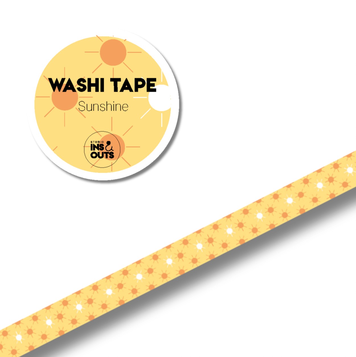 De set bevat drie bijpassende washi tapes in de breedtes 1,5 cm, 1 cm en 0,5 cm. Eén tape is bedrukt met confetti in regenboogkleuren op een witte achtergrond, de tweede tape toont zomerse zonnetjes in oranje op lichtgeel, en de derde tape bestaat uit een grafisch patroon met diagonale pastelstroken. Ideaal om je pagina’s creatief af te werken of quotes vast te plakken.