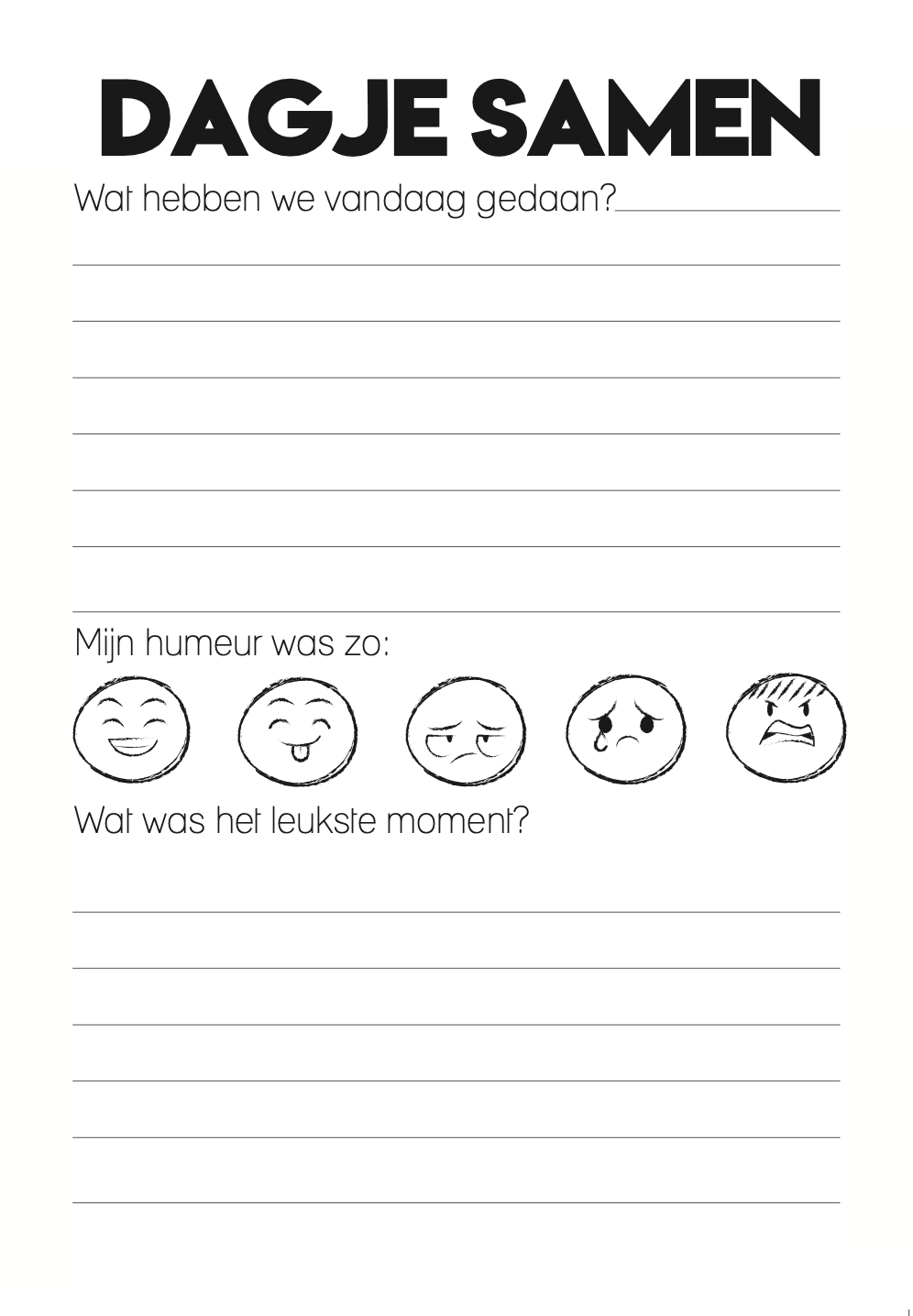 - Invulpagina’s voor ‘Dagje samen’, inclusief humeur-icoontjes en vragen over jullie leukste momenten
