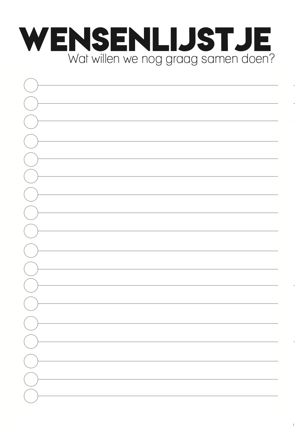 - Een wensenlijstje voor alle dingen die jullie nog graag samen willen doen