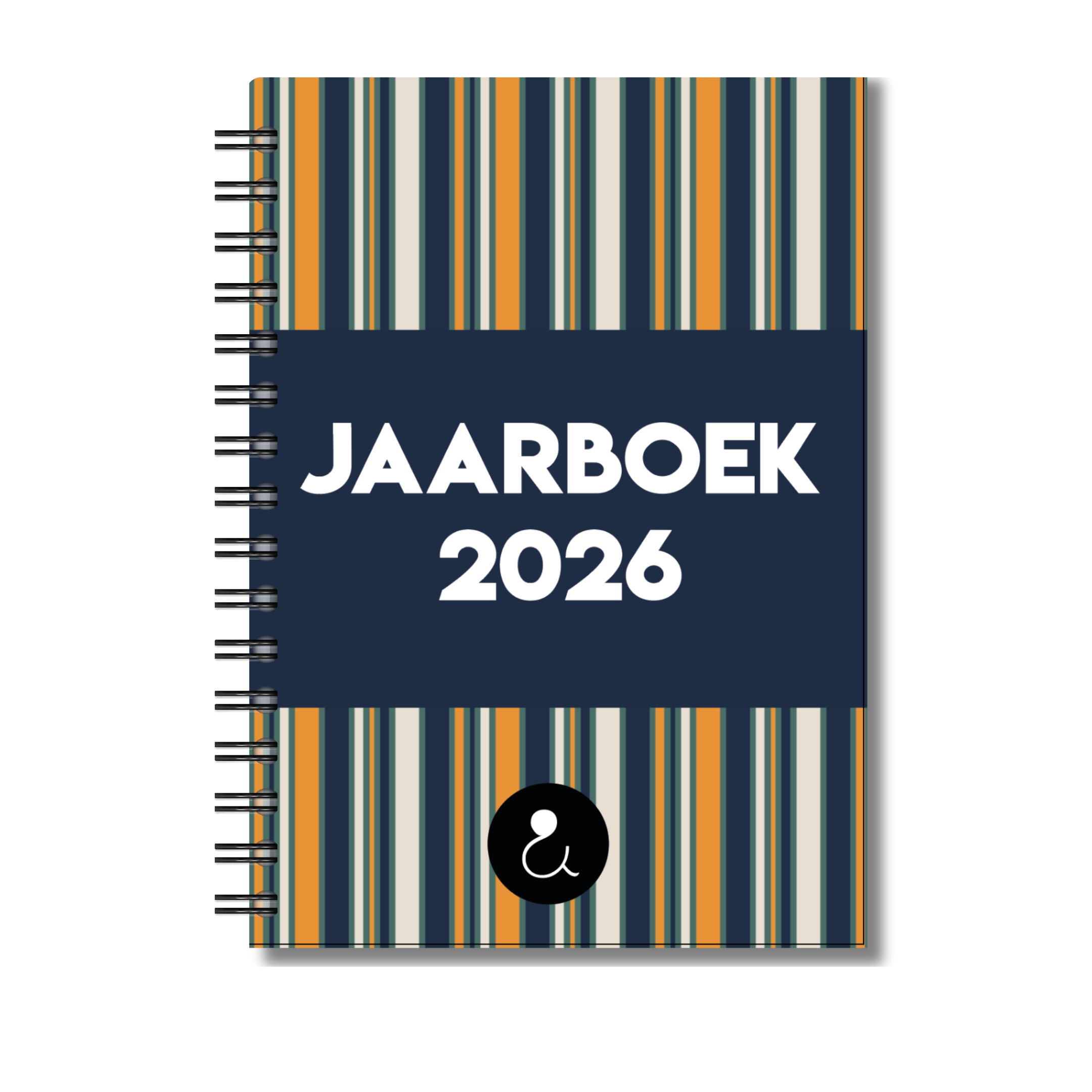 Jaarboek 2026 A5 | Blanco Jaarboek A5 2026 | Fotoboekje Jaarboek | 14,8x21cm | Strepen Blauw Geel