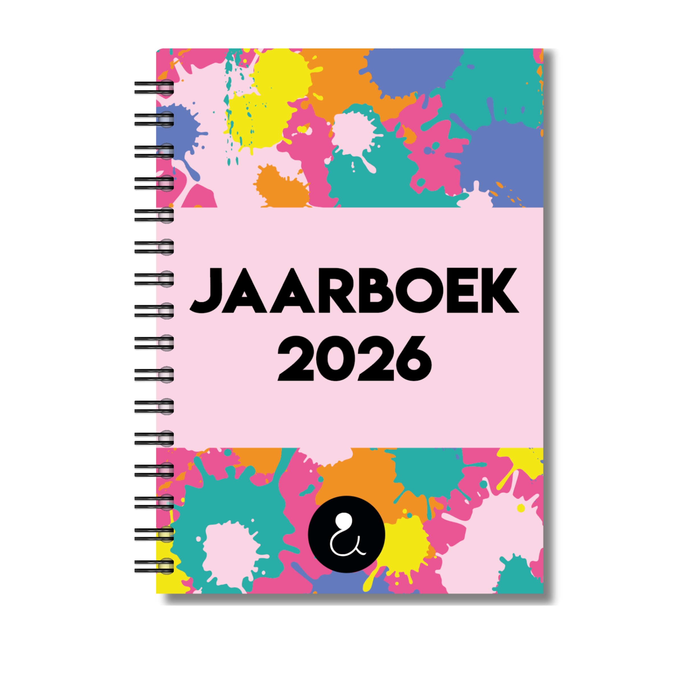 Jaarboek 2026 A5 | Blanco Jaarboek A5 2026 | Fotoboekje Jaarboek | 14,8x21cm | Vrolijke Vlekken