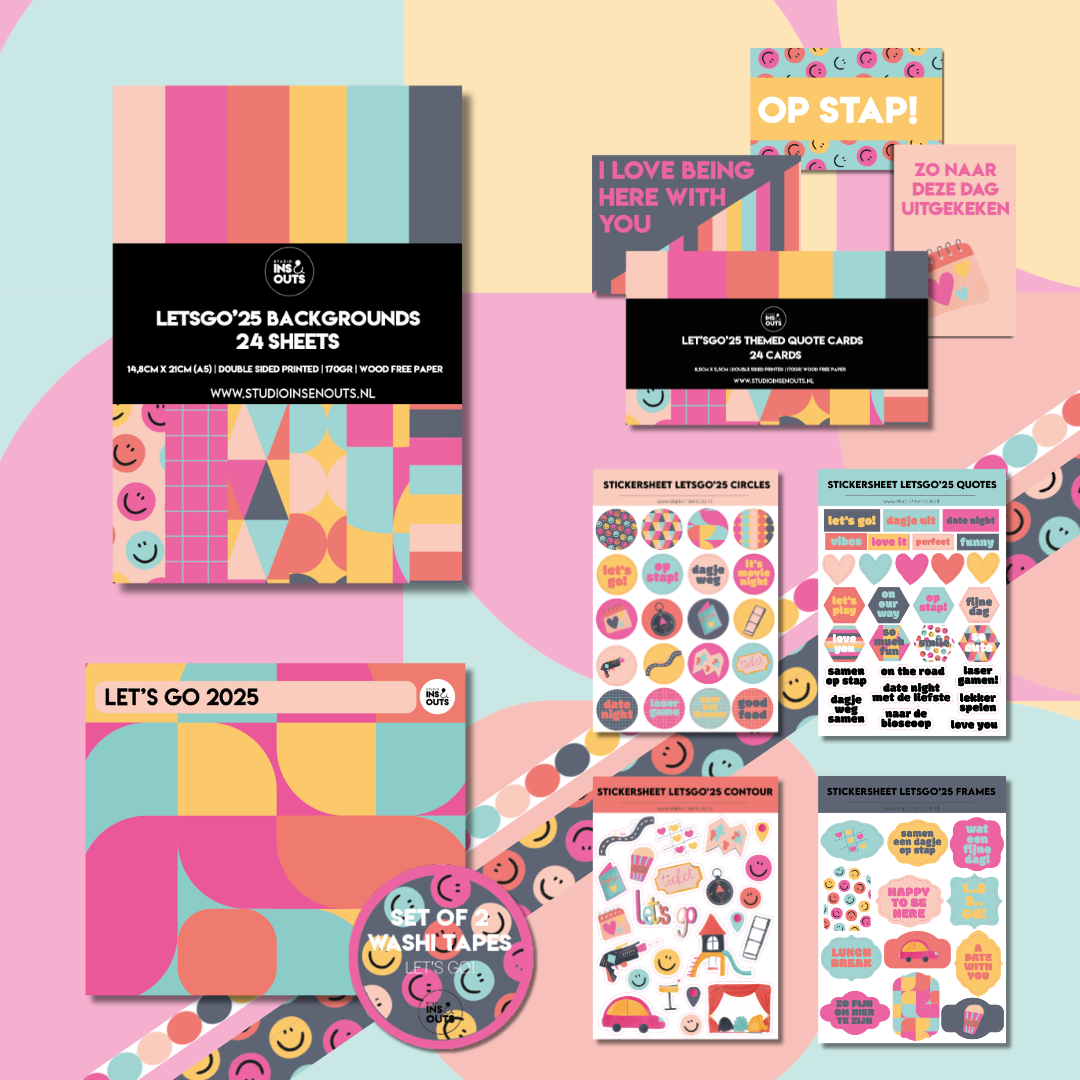 Dit paperpad is onderdeel van de Let's Go'25 collectie en speciaal ontwikkeld voor invulboeken en fotoboeken van Studio Ins & Outs. Combineer het papier makkelijk met andere items uit de collectie, zoals stickers, polaroidkaartjes, quotekaartjes en washi tape!