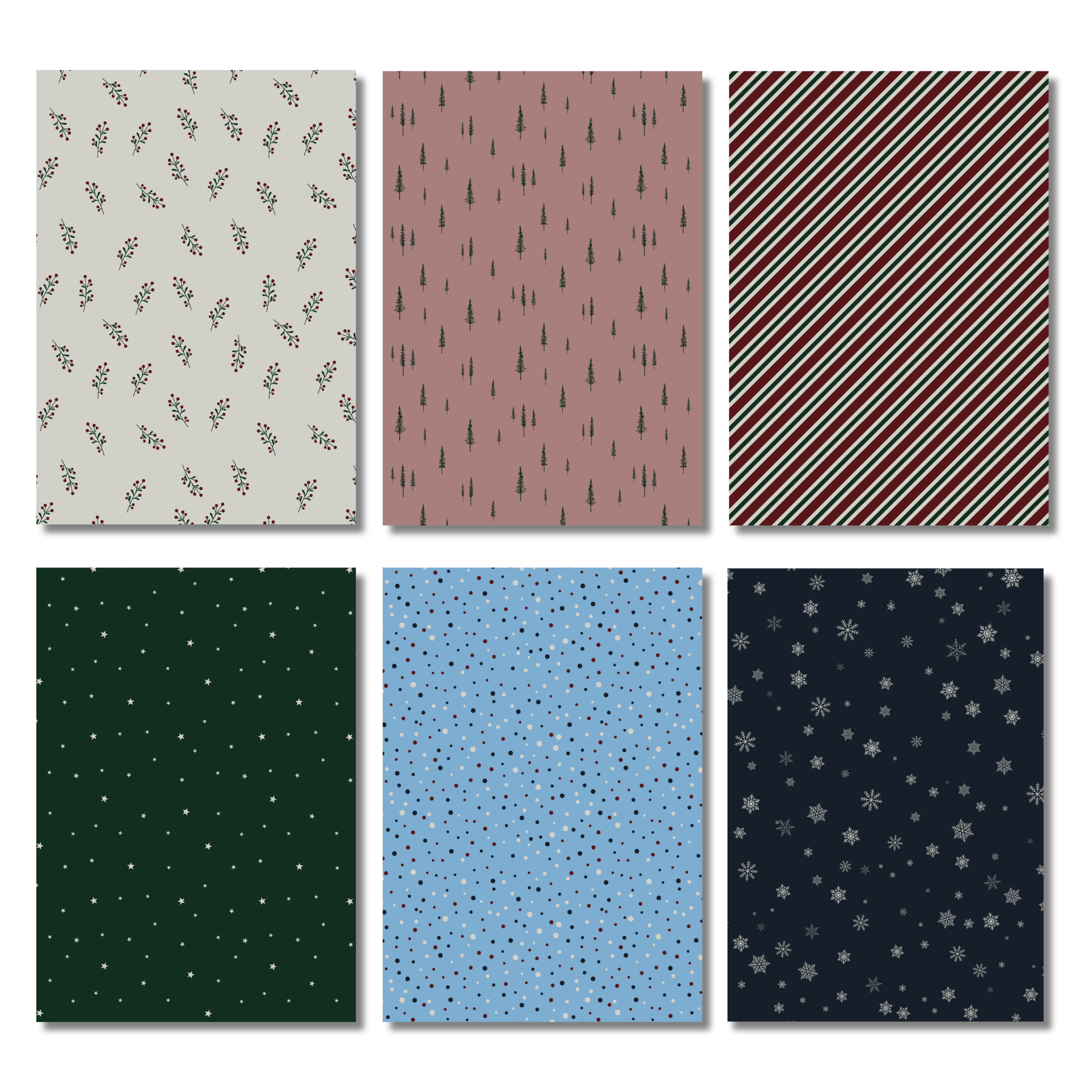 Deze paperpad bevat 24 stevige A5-vellen van 170 grams houtvrij papier. Elk vel is dubbelzijdig bedrukt: één zijde met een effen kleur en de andere met een bijpassend patroon. Denk aan sneeuwvlokken, dennenbomen, sterretjes, wintertakjes en diagonale strepen in klassieke kerstkleuren. Ideaal om sfeer en diepte te geven aan al je creatieve projecten.
