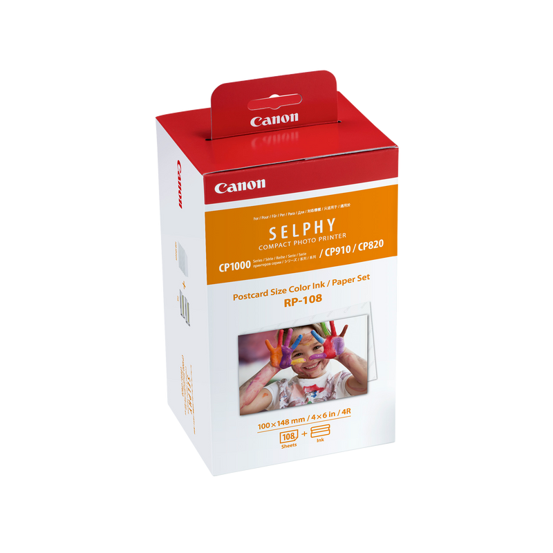 De RP-108-set geschikt voor diverse modellen uit de Canon SELPHY-serie.