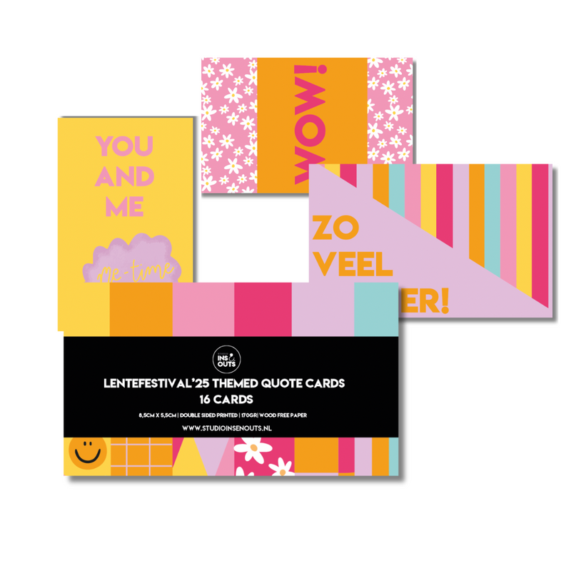- Type: Mini kaartjes met quotes en vrolijke festivalprints