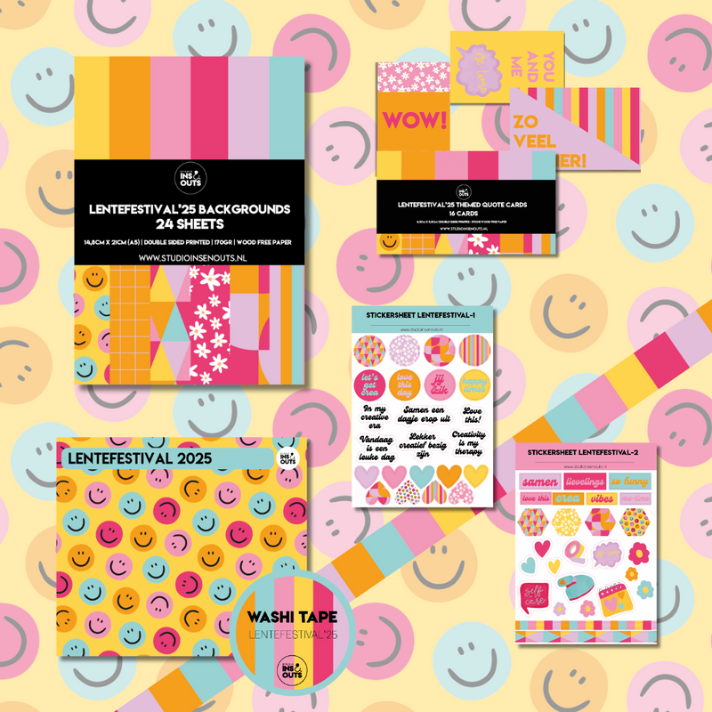 Combineer deze tape met bijpassende stickervellen of kaartjes uit de Lentefestival'25 collectie van Studio Ins & Outs. De kleuren en stijl zorgen voor een harmonieus geheel in elk project.